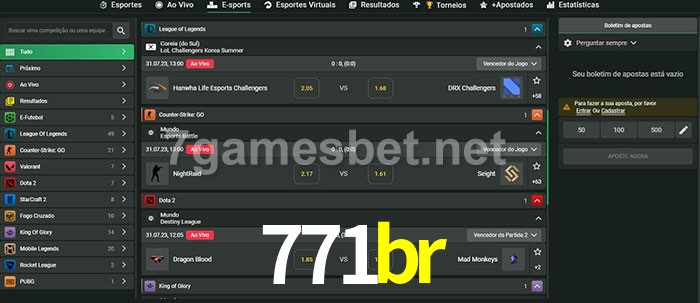 O 771br oferece uma grande seleção de opções de apostas em e-sports com probabilidades competitivas